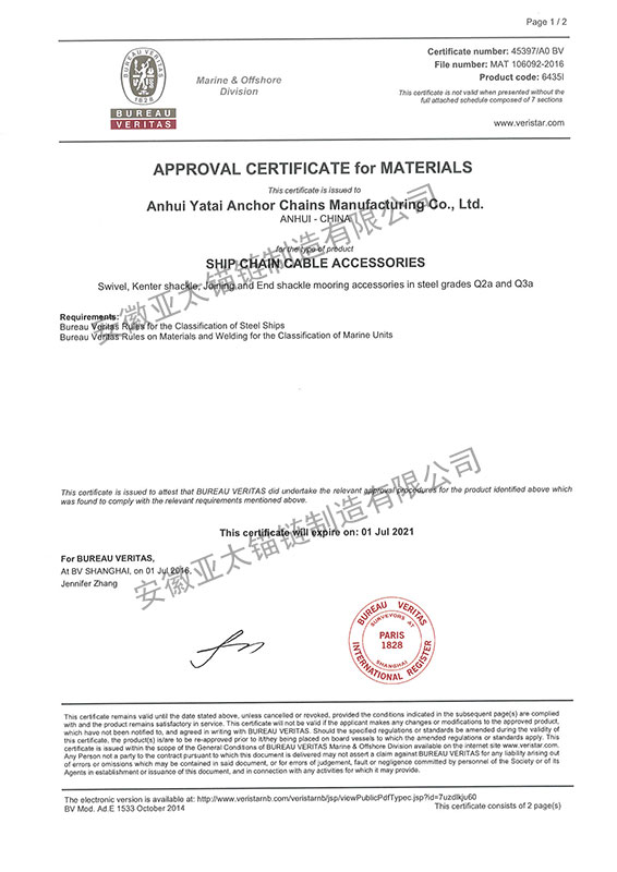 安徽亞太錨鏈制造有限公司是國家高新技術(shù)企業(yè),也是國家GB/T 549-2017《電焊錨鏈》標準的起草和制定單位之一。公司旗下設(shè)有錨鏈分廠、浮標分廠、舾裝件分廠等多個分廠。公司專業(yè)從事φ12.5mm-φ107mm二、三級船用錨鏈、浮標錨鏈、錨鏈附件,錨、船舶曬裝產(chǎn)品、航標、系船浮、船型標、多種規(guī)格海洋監(jiān)測浮標及航標燈等產(chǎn)品的生產(chǎn)、安裝和服務(wù)。目前公司的產(chǎn)品銷往全國各地船廠、碼頭、航標處、航道局、海洋局,并已走上國際市場,如東南亞、中東、歐美等國家。